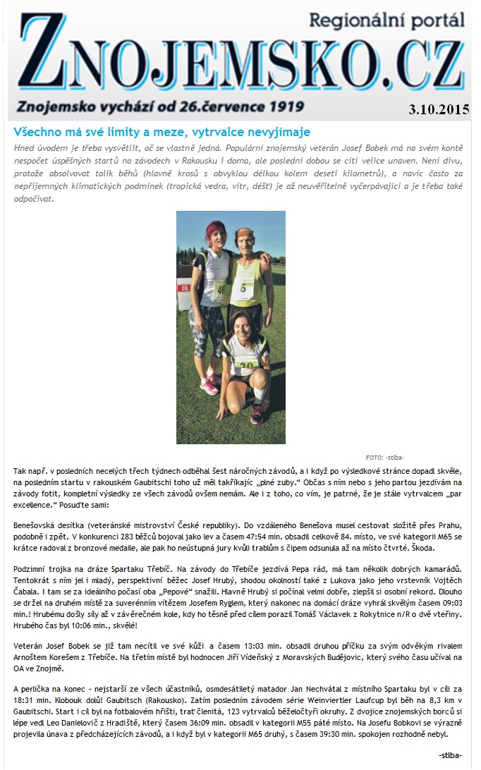 2013-03-13 Znojemské listy - V Mistelbachu nám nestačili, usmívá se běžec Čabala